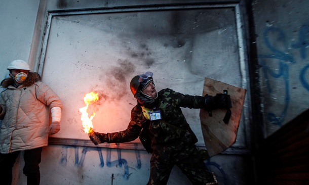 Драки с Беркутом и дымовая завеса на Грушевского. Фоторепортажи 22 января