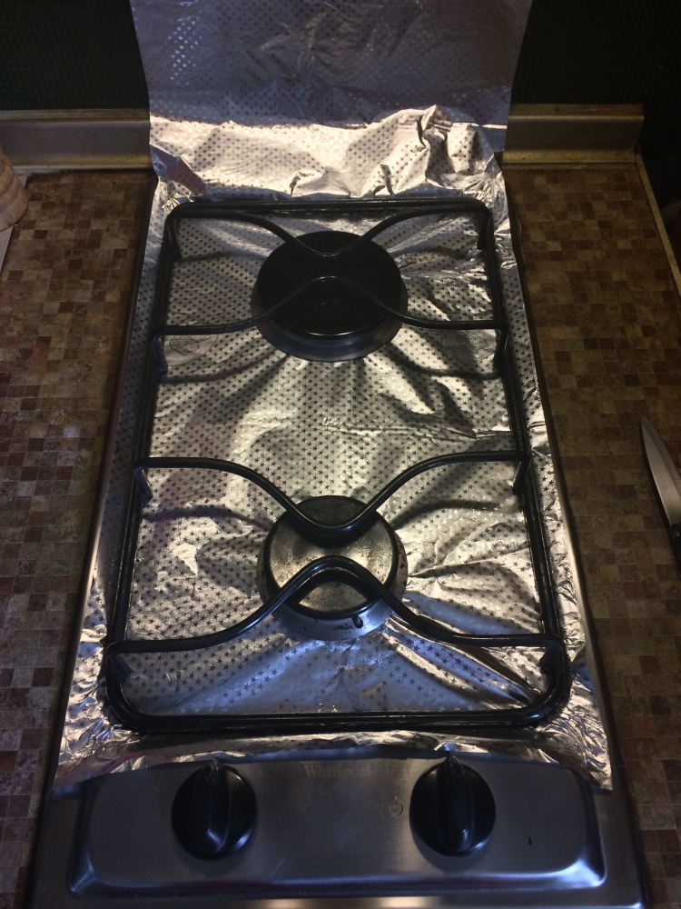 Вырезаем отверстия под конфорки ножом или ножницами (можно просто проткнуть пальцем)