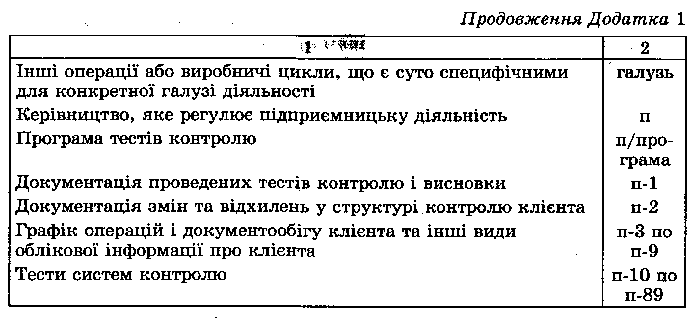 Види документації мають відповідати галузевим ознакам клієнта і змісту прийнятих аудитором рішень.