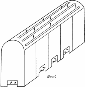 Кроме того, теплонагреватель может содержать несколько цилиндрических корпусов, закрепленных в общем кожухе, внизу которого на расстоянии 10 мм от ножек расположено светоотражательное дно, с образованием секции, при этом количество секции зависит от объема отапливаемого помещения.